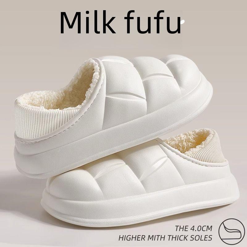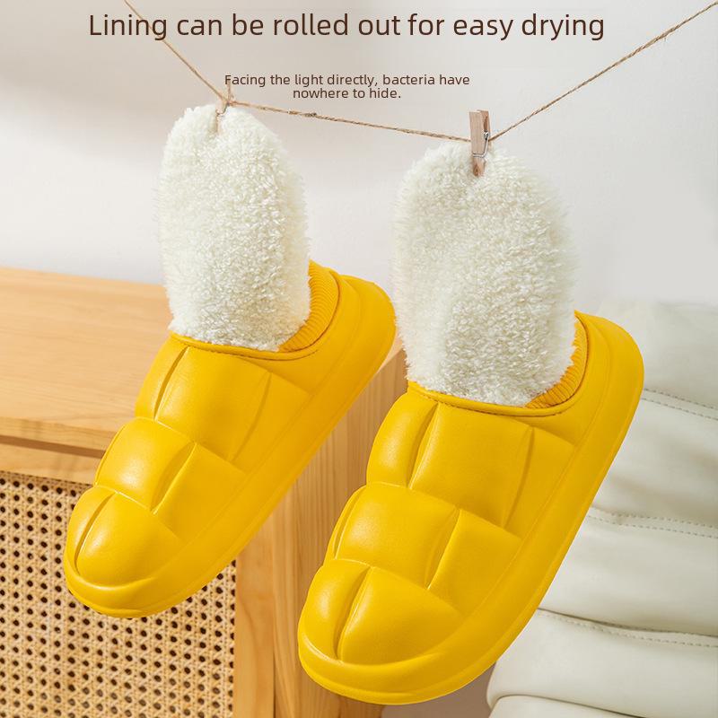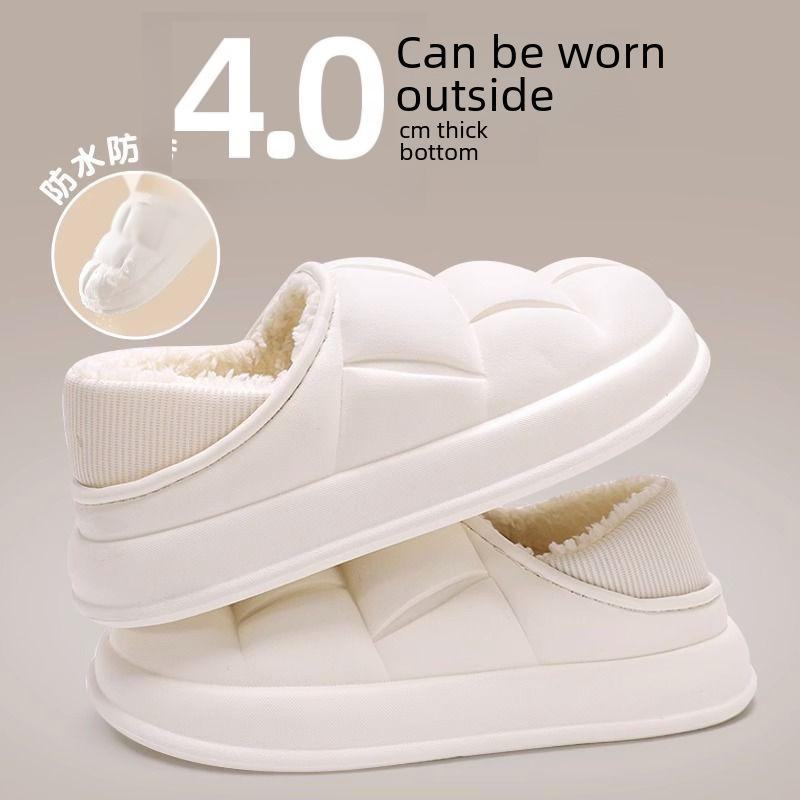«Женские водонепроницаемые тапочки из хлопка с мехом — осень/зима 2023 г. Нескользящая домашняя обувь»