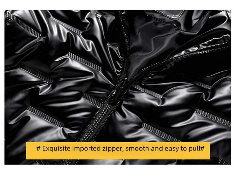 Оставайтесь в тепле и будьте стильными этой зимой с мужской блестящей курткой с капюшоном.. Изготовленная из высококачественной полиэфирной ткани, эта куртка обеспечивает комфорт и долговечность.. Капюшон имеет подкладку из полиэфирного волокна, что обеспечивает дополнительный слой тепла и защиту от холода.. Эта куртка с толстой хлопковой подкладкой обеспечивает отличную теплоизоляцию, сохраняя комфорт в холодную погоду.. Доступно в больших размерах, обеспечивает удобную посадку для разных типов телосложения, что делает его отличным выбором для тех, кто ищет надежное зимнее пальто.