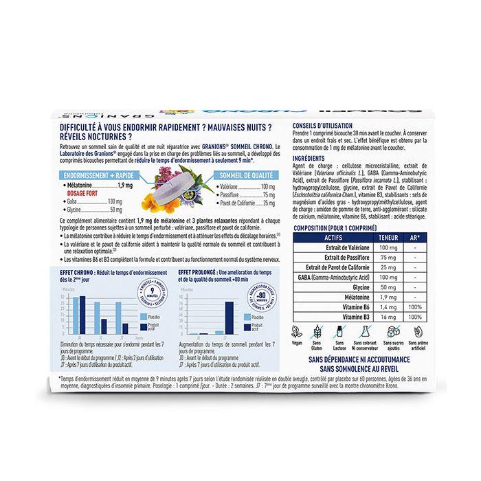 Granions Sommeil Chrono 9мин - Мелатонин 1,9 мг, Валериана, Пассифлора, ГАМК - 30 таблеток