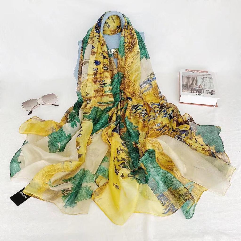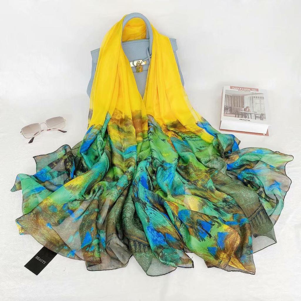 Элегантный шелковый шарф для женщин с принтом, аксессуар в повседневном стиле, дышащий, декоративный, солнцезащитный, шелковый платок с цветочным узором для повседневных выходных