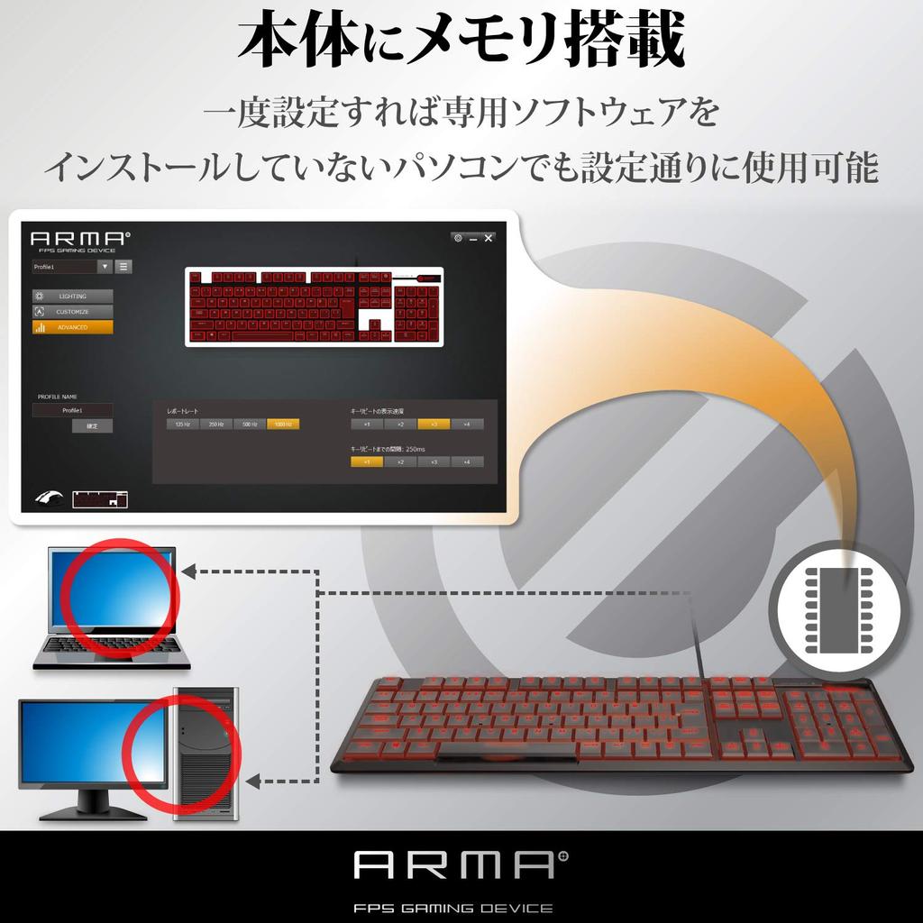 Elecom Игровая клавиатура механическая оригинальная тонкая конструкция полноразмерная 50 миллионов раз прочный переключатель японская раскладка светодиодная подсветка черная [ARMA] TK-ARMA50BK
