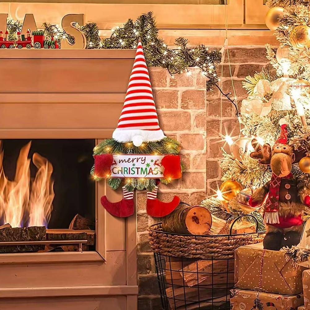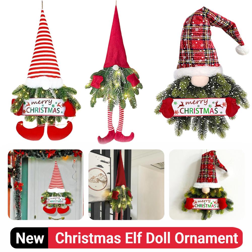 Светодиодное рождественское украшение Санта-Гном Подвеска с огнями Искусственное растение Эльф Кукла Украшение Мультяшный Безликий Старик Кукла Подвеска