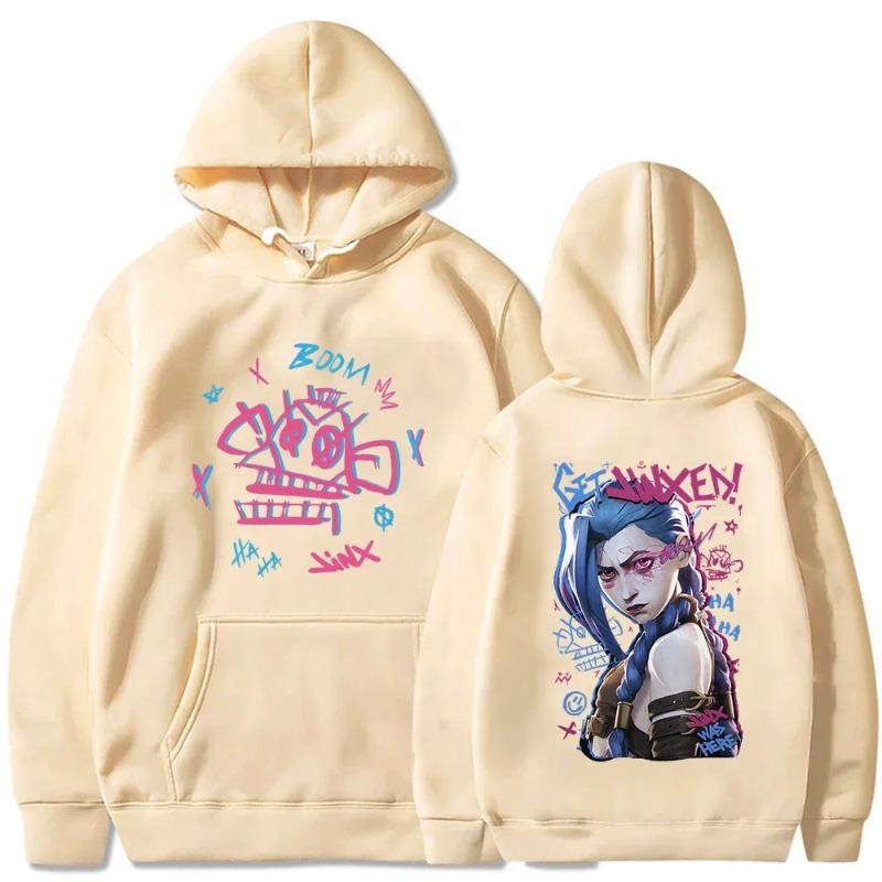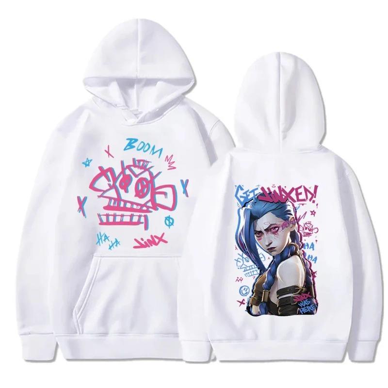 Толстовка с капюшоном Arcane-Jinx в стиле аниме Harajuku для женщин, пуловеры, топы с капюшоном, модные толстовки, повседневные пуловеры, толстовки и свитшоты для женщин