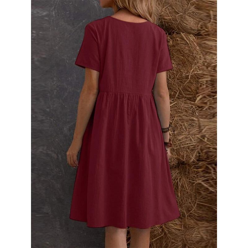 Летние ретро свободные карманы однотонные круглые шеи женские хлопковые льняные повседневные платья