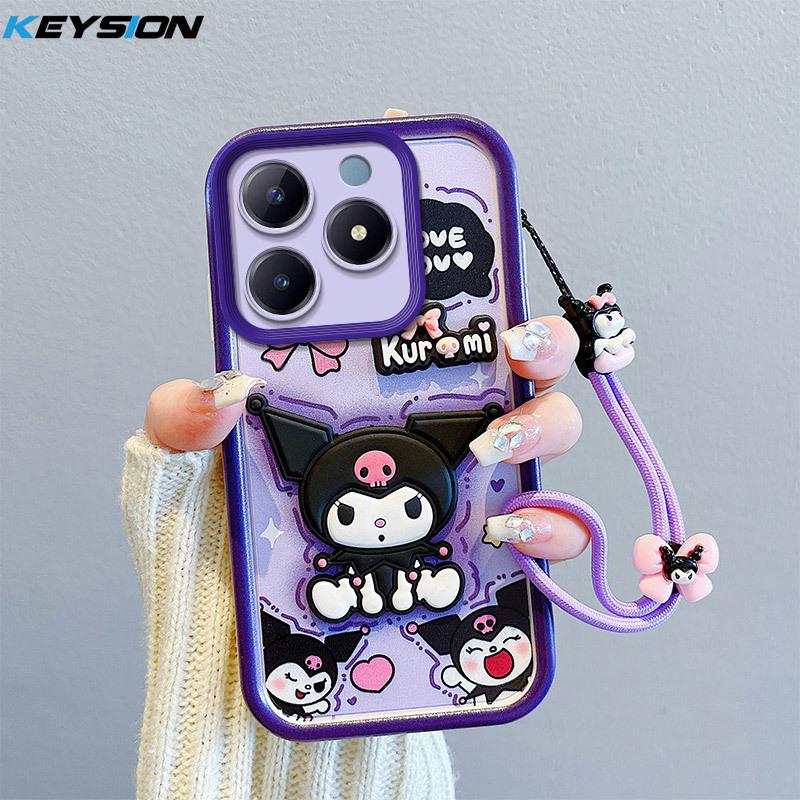 KEYSION Противоударный чехол для Realme C63 C61 с ремешком, мягкий силиконовый милый 3D-чехол для телефона с мультяшной куклой для OPPO Reamle C55 C53 C51