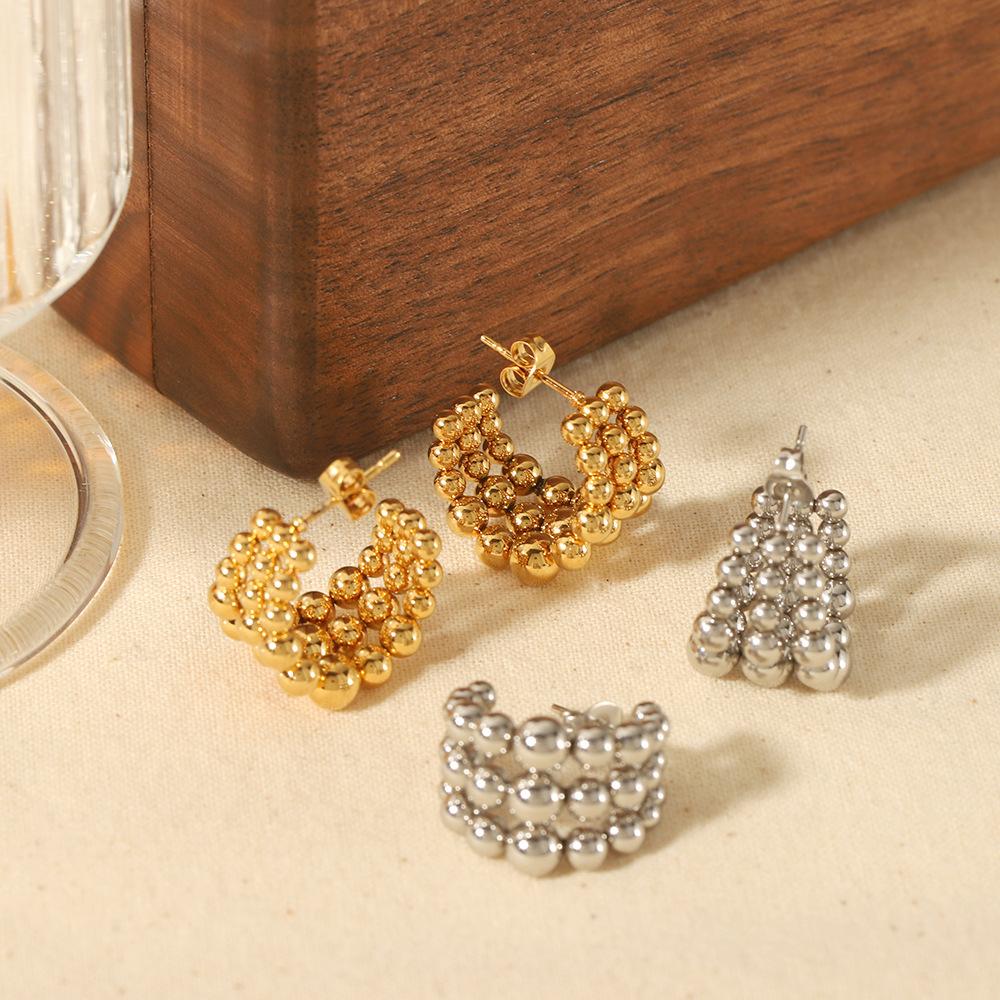 Новые нишевые легкие роскошные серьги с круглыми бусинами в форме буквы С из 18-каратного золота из нержавеющей стали, женская мода