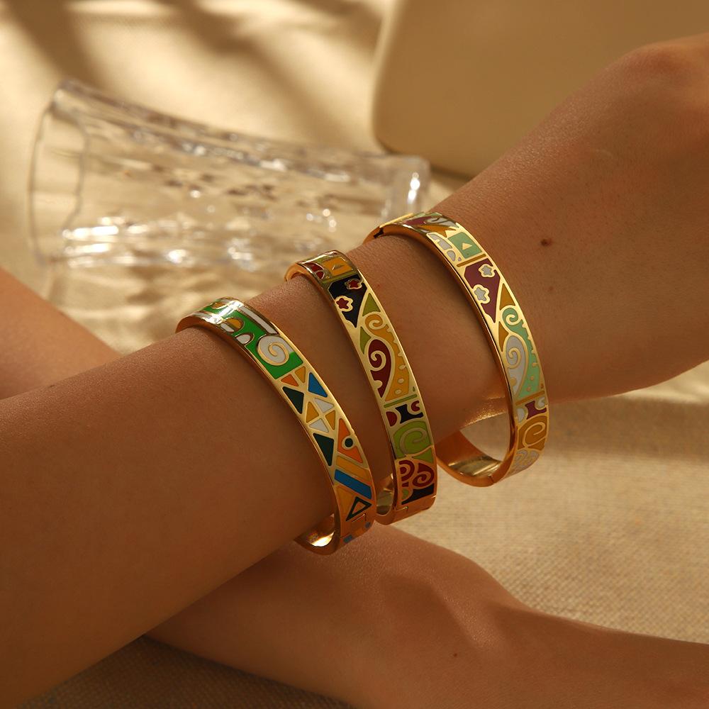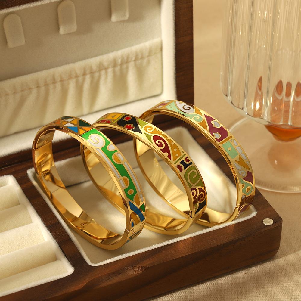 Браслет из титановой стали с эмалью для девочек старшего возраста, браслет из 18-каратного золота из нержавеющей стали, браслет ins