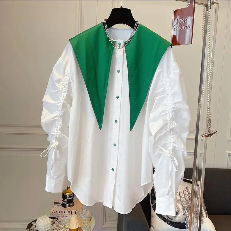 Белая женская рубашка с заостренным воротником в стиле пэчворк, повседневные блузки с длинными рукавами, французский осенний дизайн, женские универсальные топы — купить товар онлайн с бесплатной доставкой по всему миру!