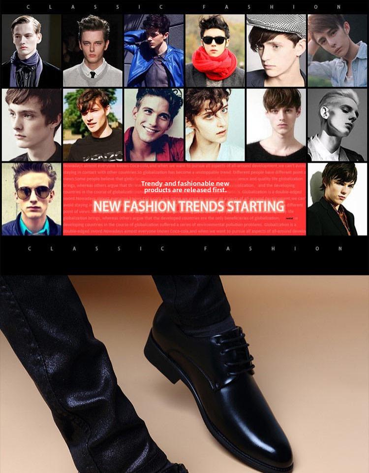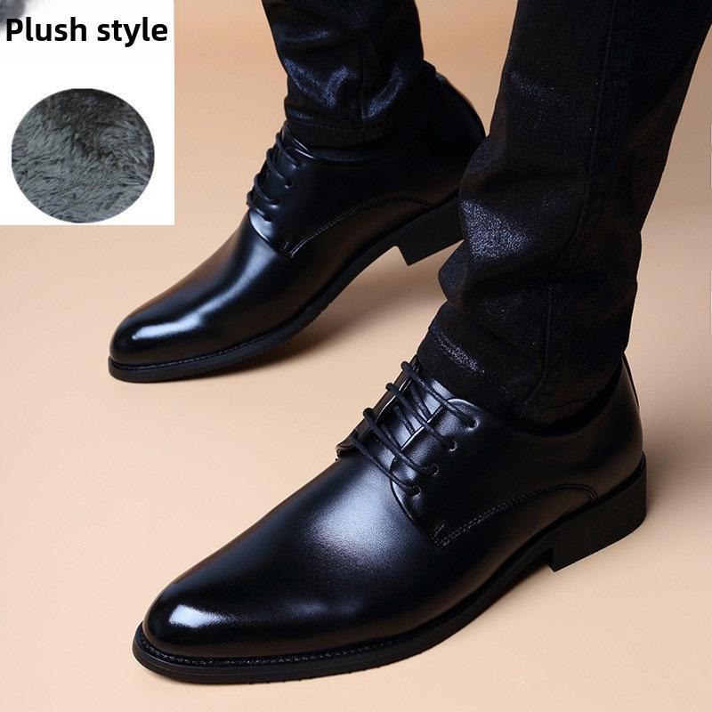 Мужские модные деловые повседневные кожаные туфли: Осенне-зимний корейский стиль с острым носком и элементами, увеличивающими рост.