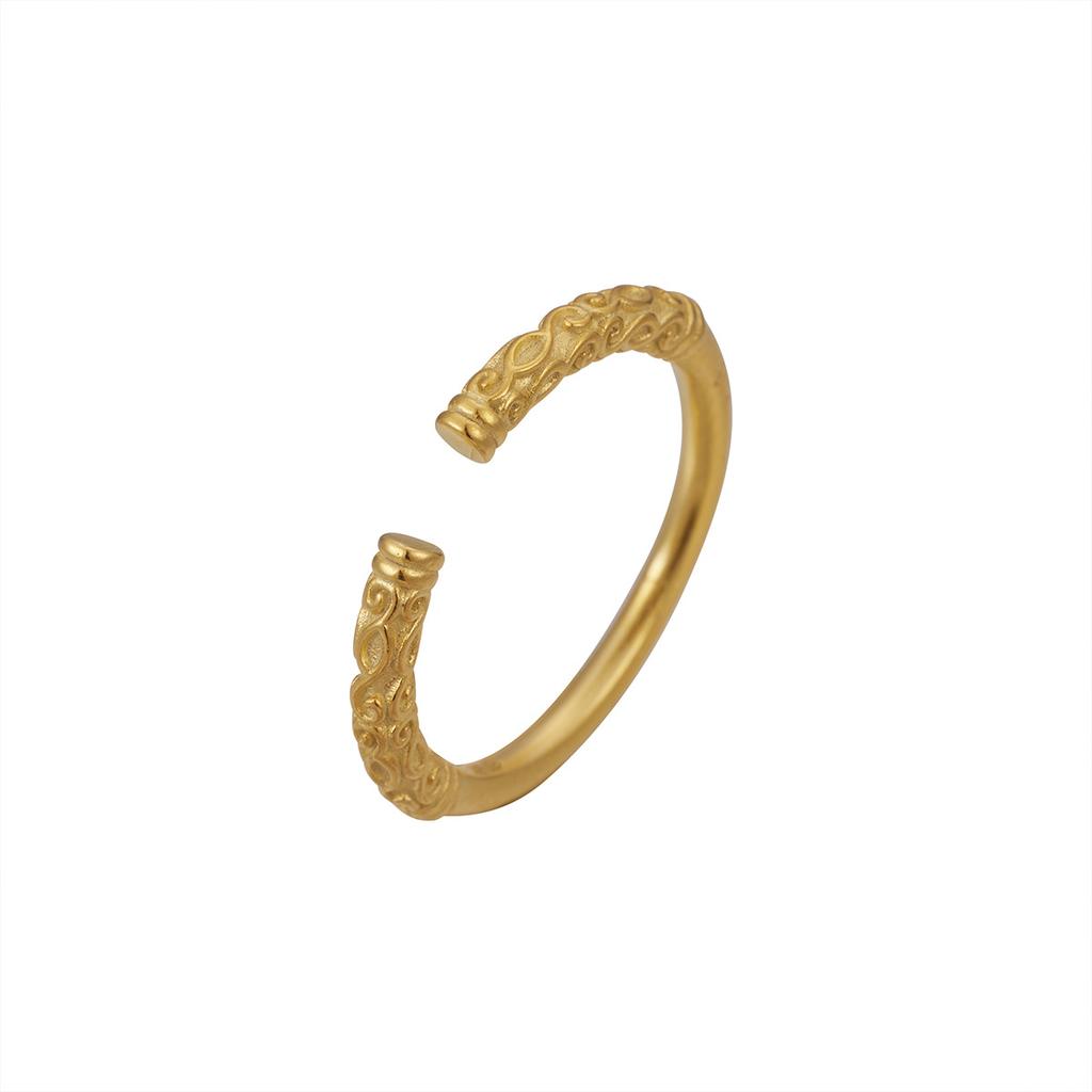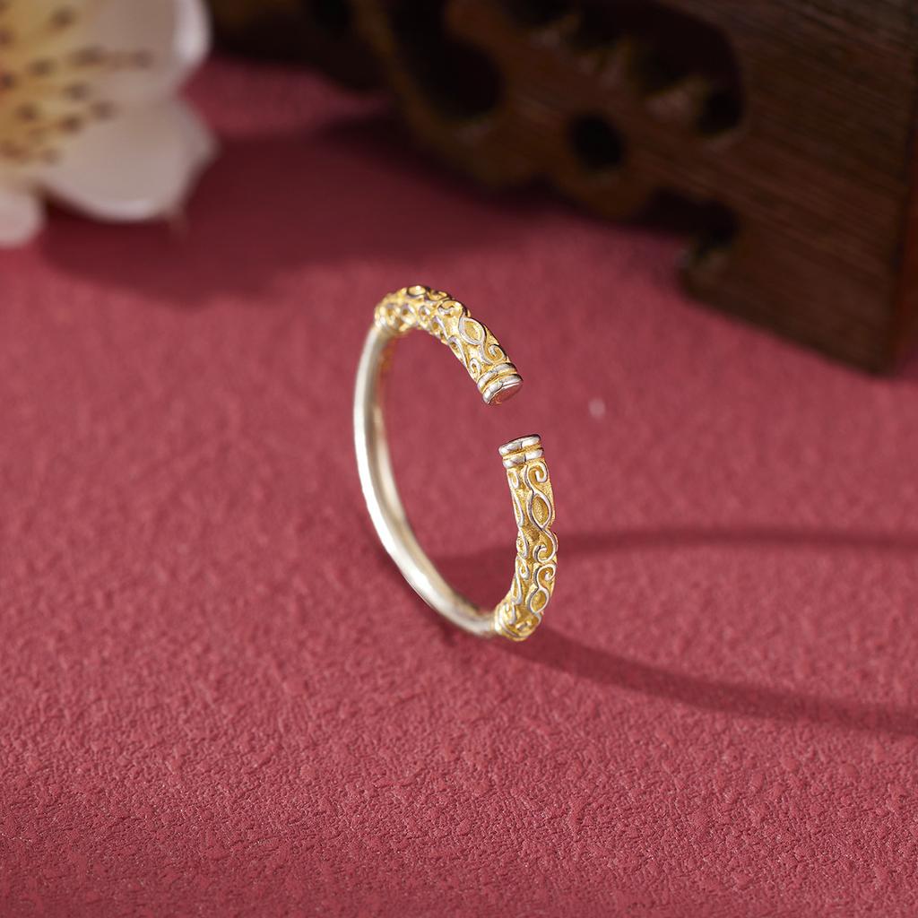 Pure silver 990 women's ring inheritance, curl grass pattern gold hoop ring women's ring ancient magic hand