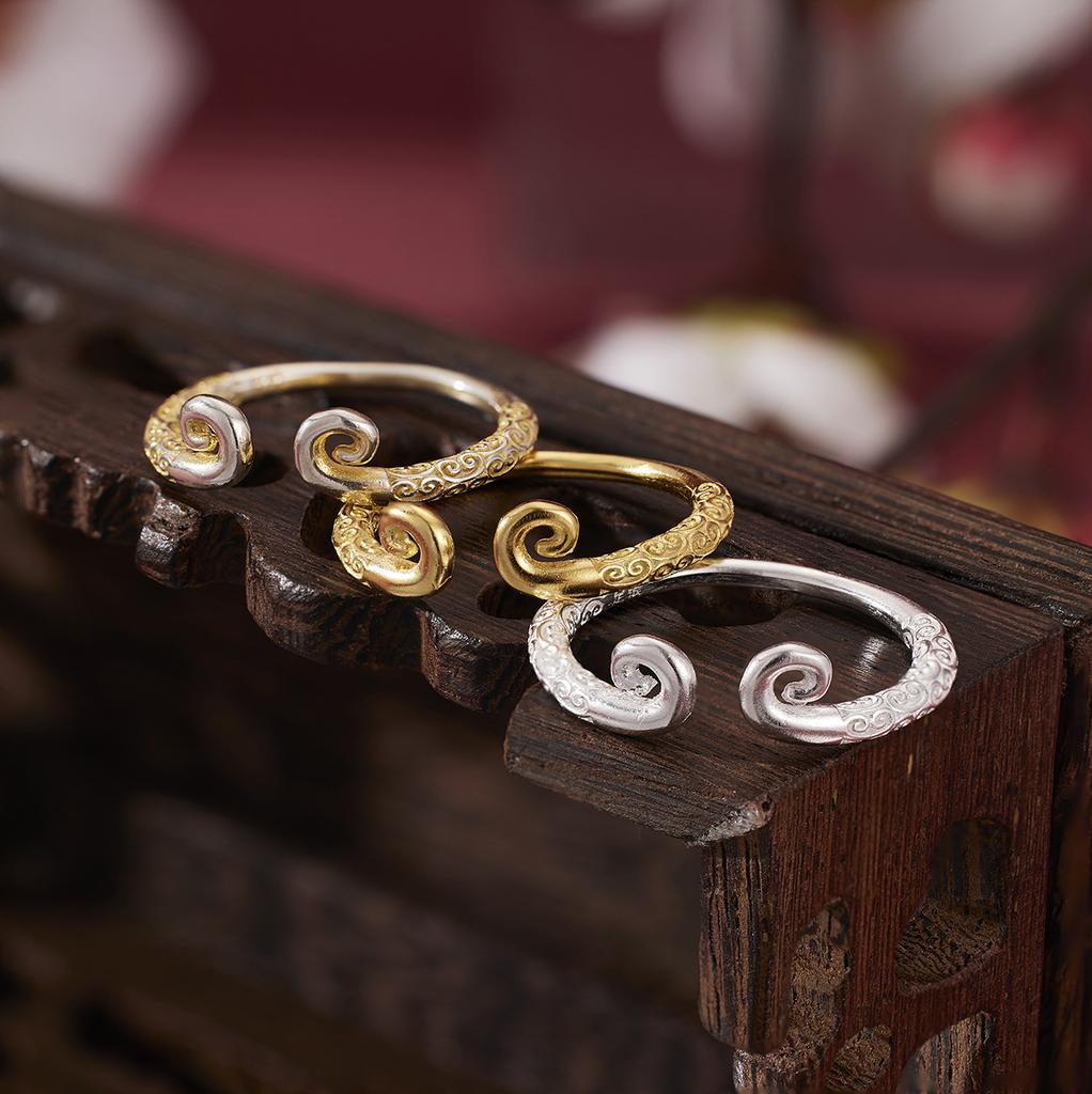 Кольцо из чистого серебра 990 пробы, женское украшение, простое кольцо с заклинанием, кольцо с изображением брата-обезьяны, открывающее благоприятное облако