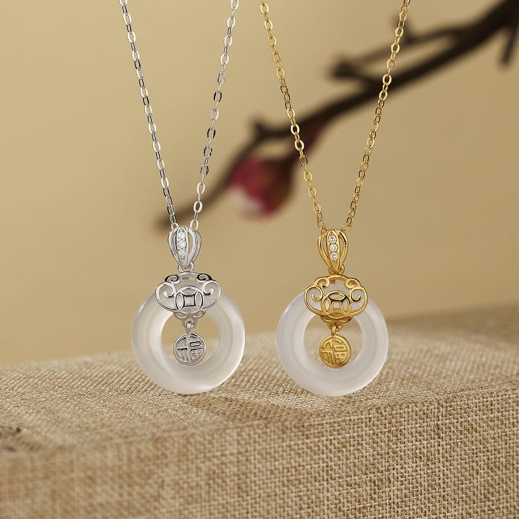 Ожерелье из серебра 925 пробы с пряжкой-символом благословения из халцедона, подвеска в виде благоприятного облака, цепочка на ключицу премиум-класса — купить товар онлайн с бесплатной доставкой до всему миру!