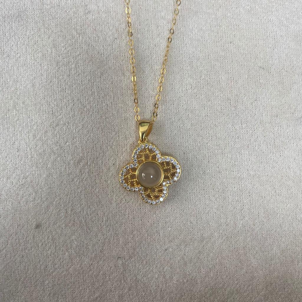 Серебряное ожерелье с четырьмя листочками клевера из натурального халцедона, винтажная цепочка на ключицу, бриллиантовый кулон, ювелирные изделия из нефрита с высоким содержанием льда