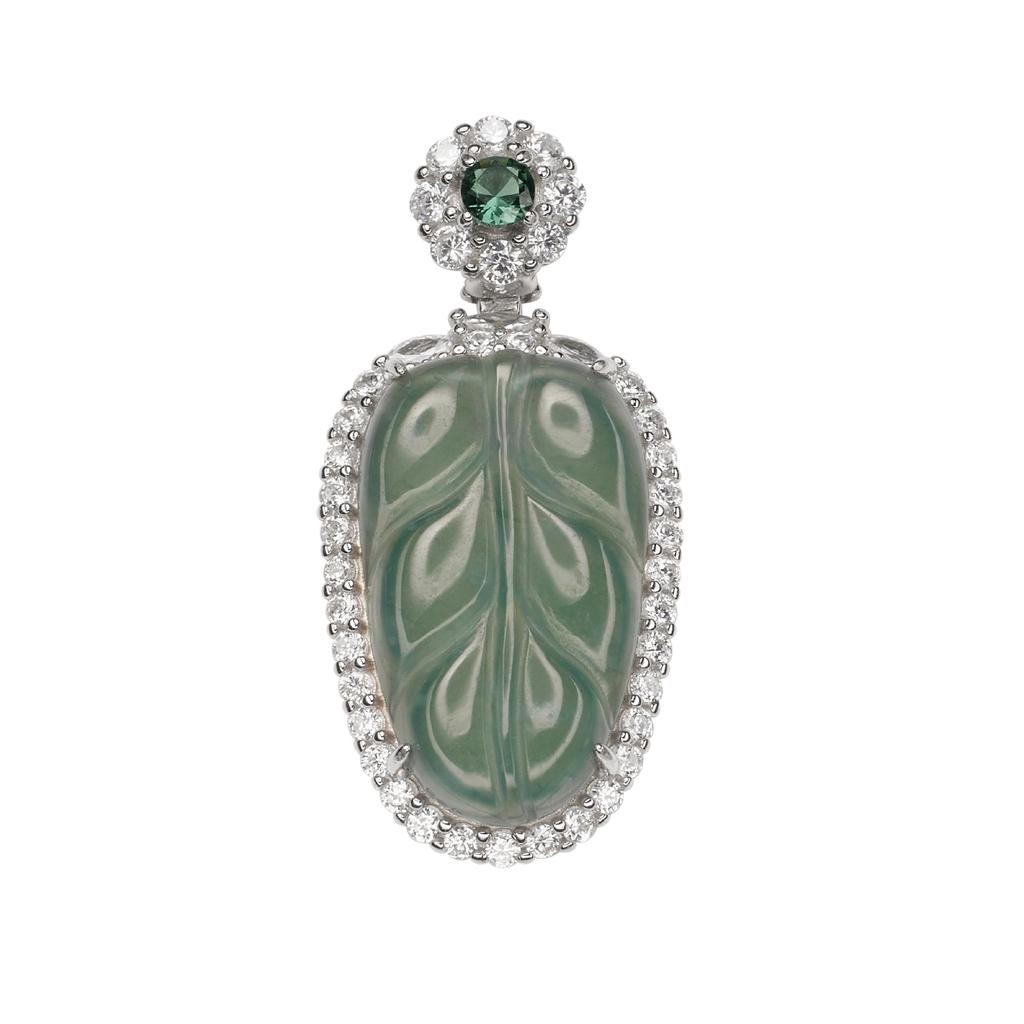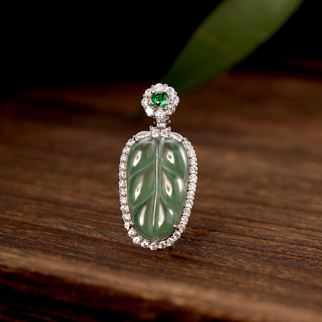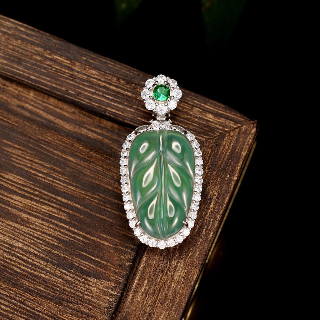 Подвеска из натурального жадеита из серебра 925 пробы в виде листа, опасного материала, подвеска из ледяного нефрита высшего качества, модная универсальная подвеска из инкрустированного серебра с нефритом