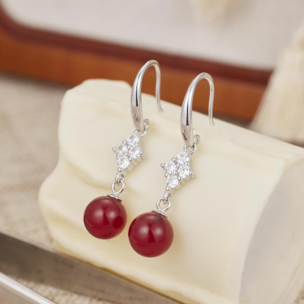 Серьги из стерлингового серебра 925 пробы, новые серьги с инкрустацией агатом, простой темперамент и высокое чувство смысла, повседневные серьги для поездок на работу.