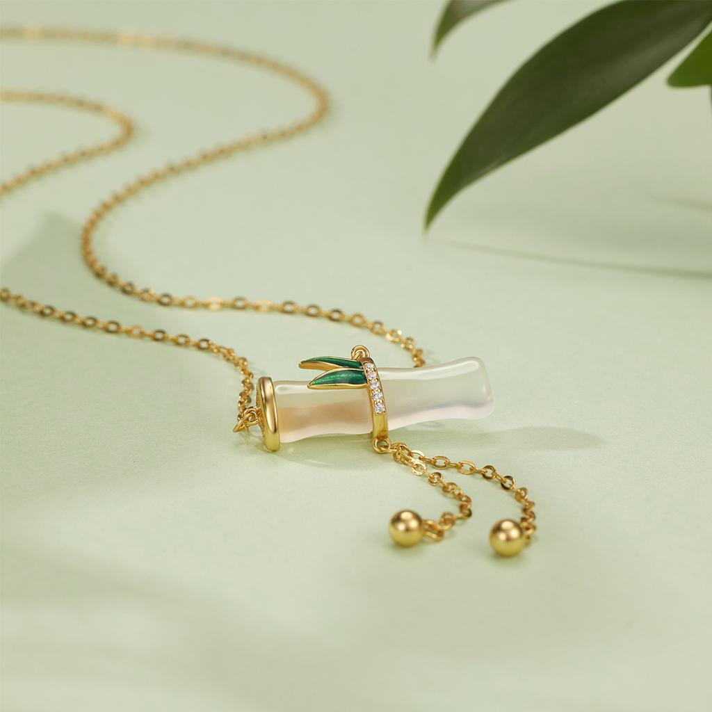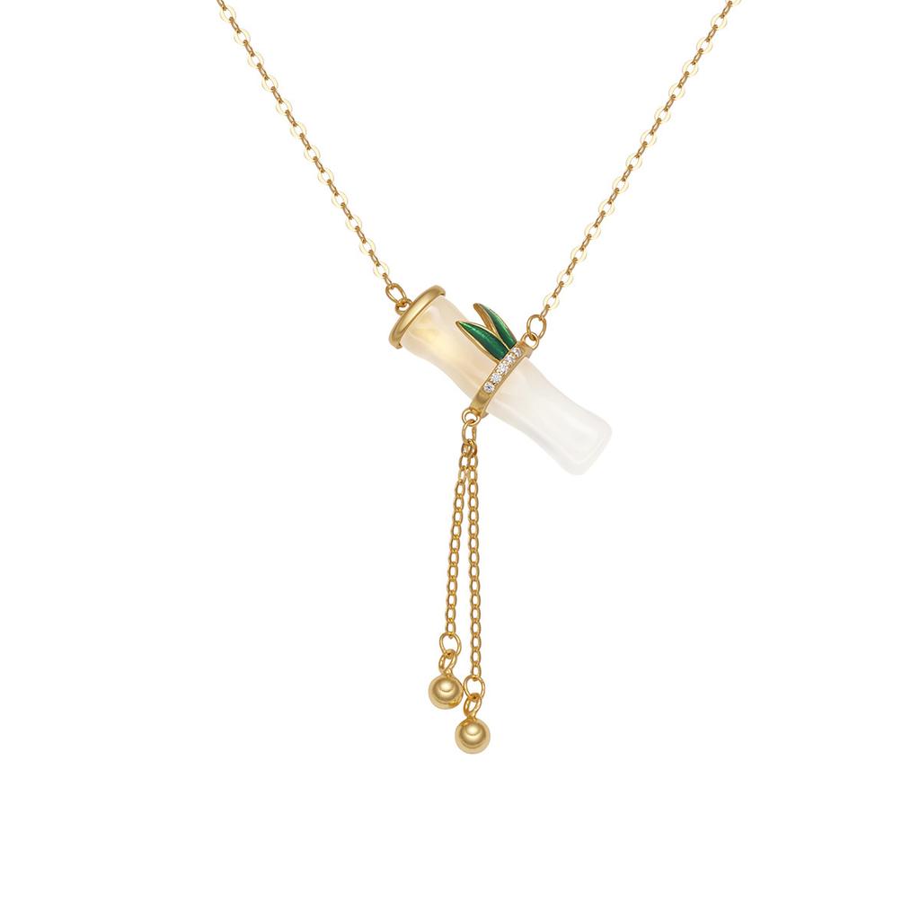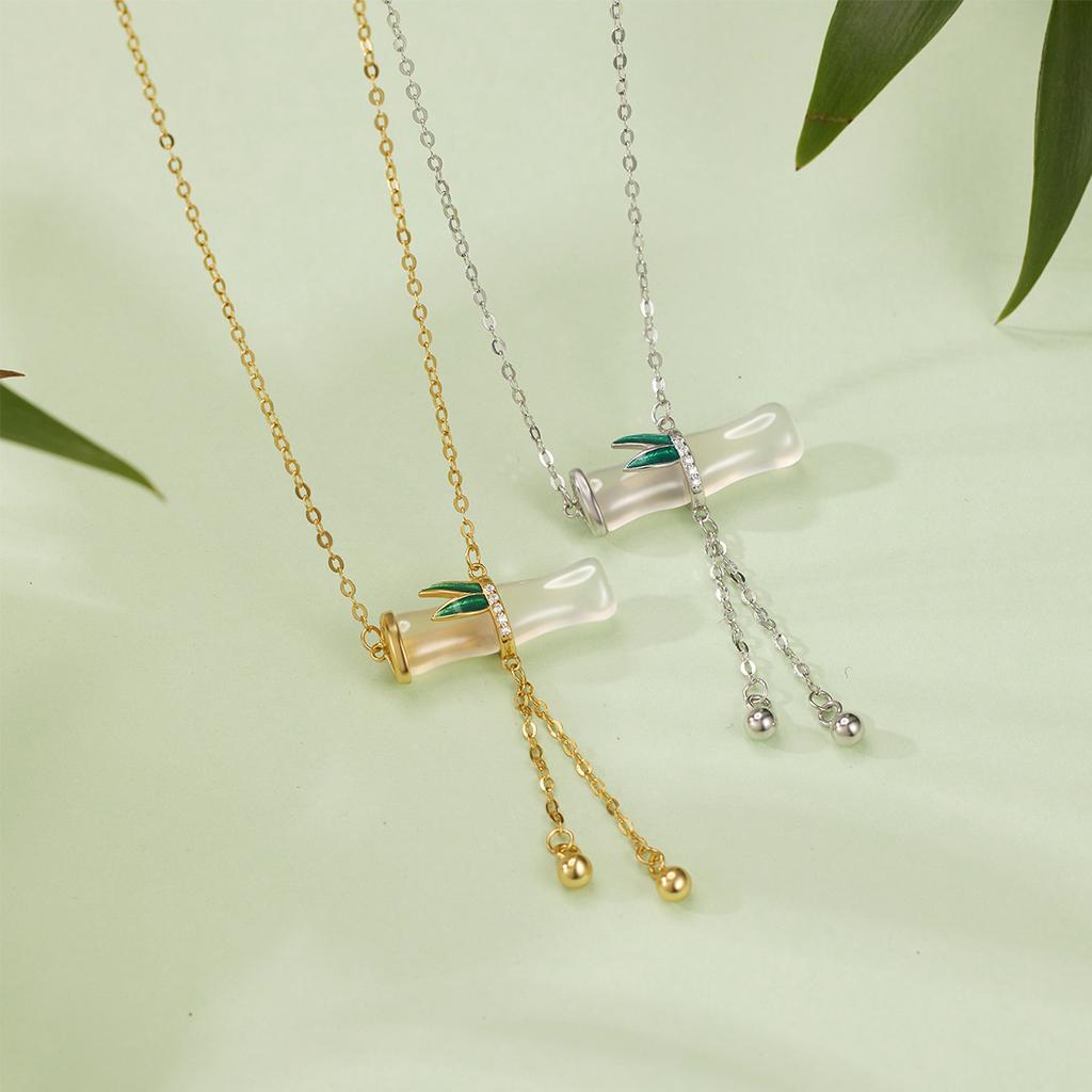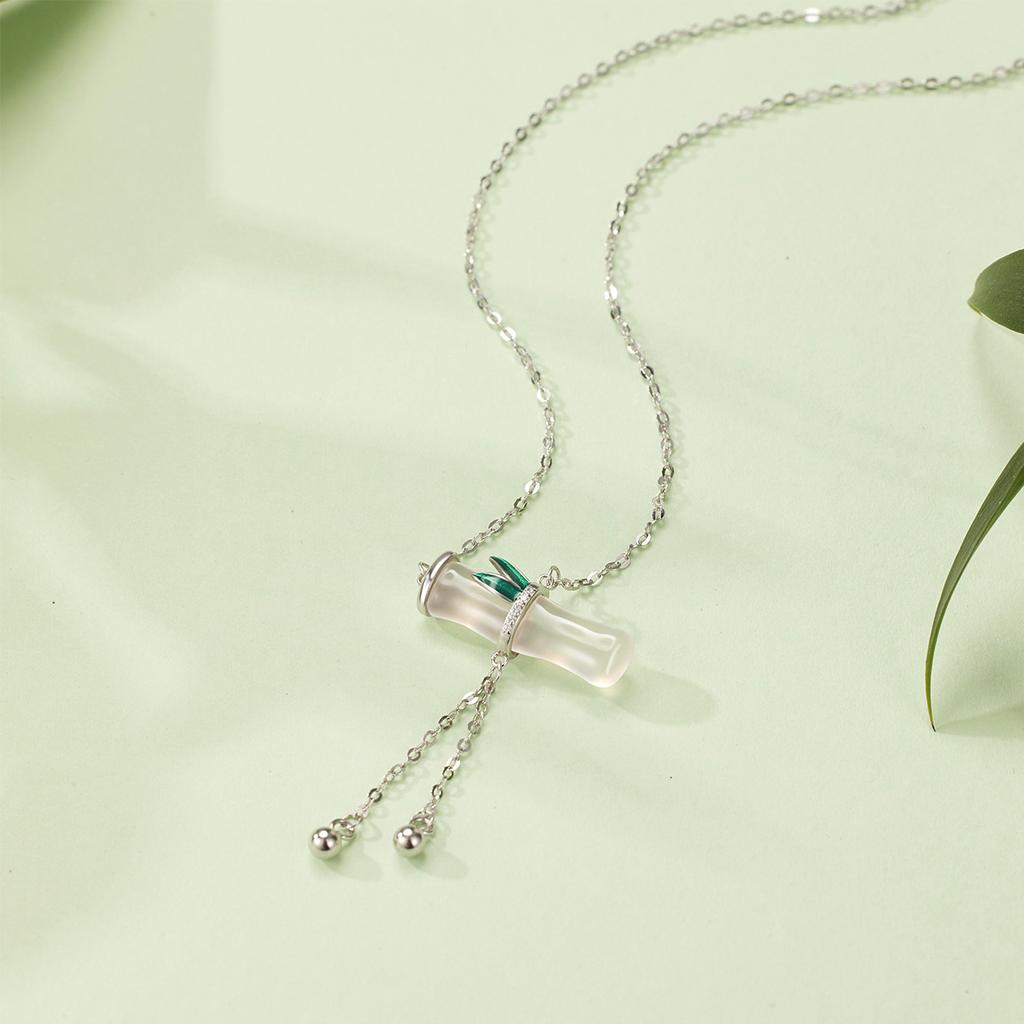 Ожерелье из стерлингового серебра 925 пробы с бахромой из халцедона и бамбука, женская легкая роскошная бамбуковая ключичная цепочка с белым агатом и листьями бамбука
