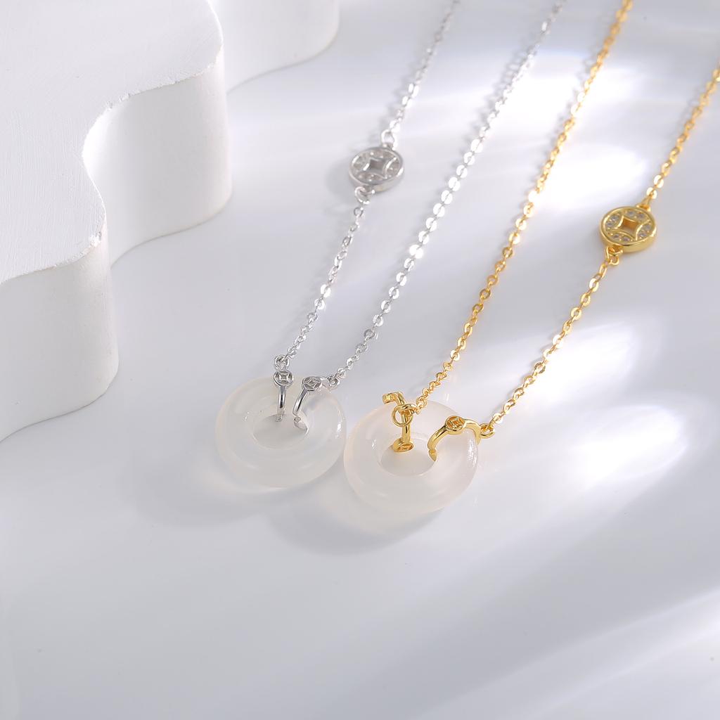 Серебряное ожерелье S925 с защитным кольцом белого халцедона, женская медная монета, гочао, этнический стиль, предохранительная пряжка, блокирующийся дворец, подвеска