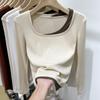 Футболка Niche Western контрастного цвета из двух частей с квадратным вырезом и длинными рукавами, короткая футболка для женщин в европейском стиле на осень и зиму — купить товар онлайн с бесплатной доставкой по всему миру!