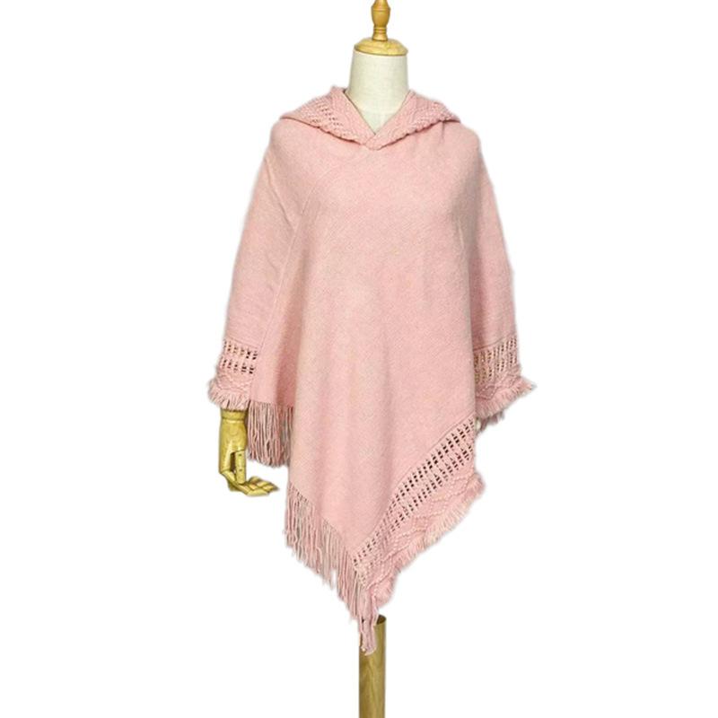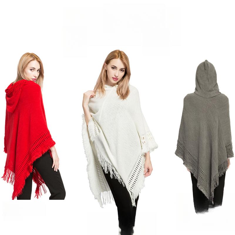 Осенне-зимний женский вязаный свитер большого размера с бахромой и шапкой, новый искусственный кашемир, хит продаж - накидка-шаль