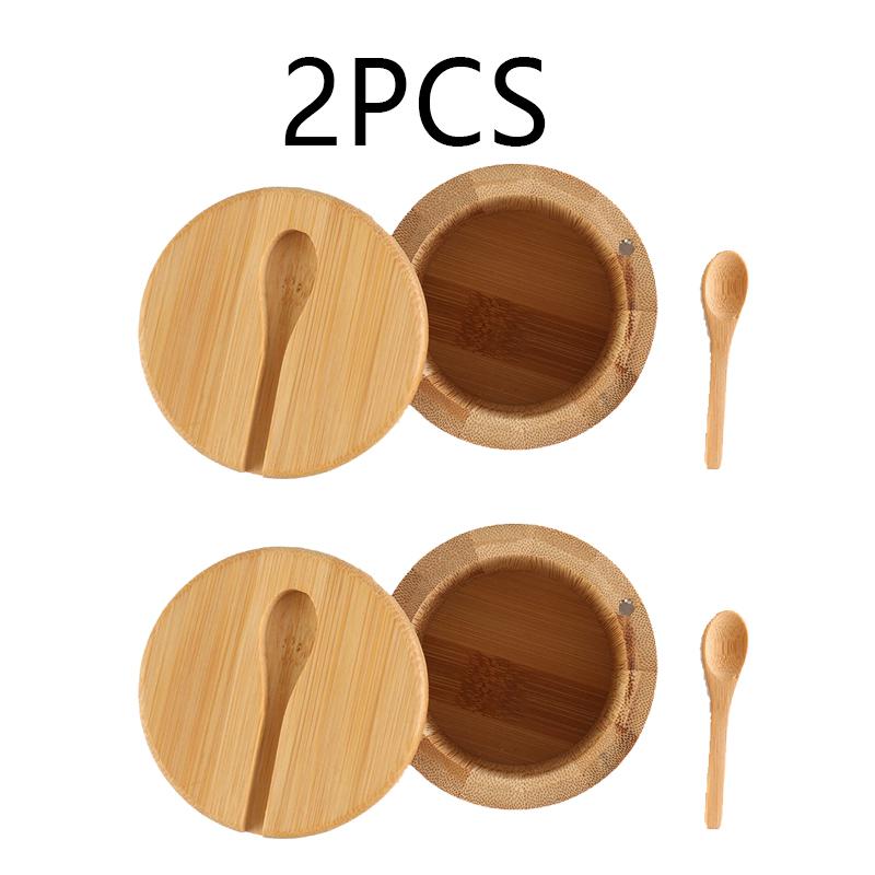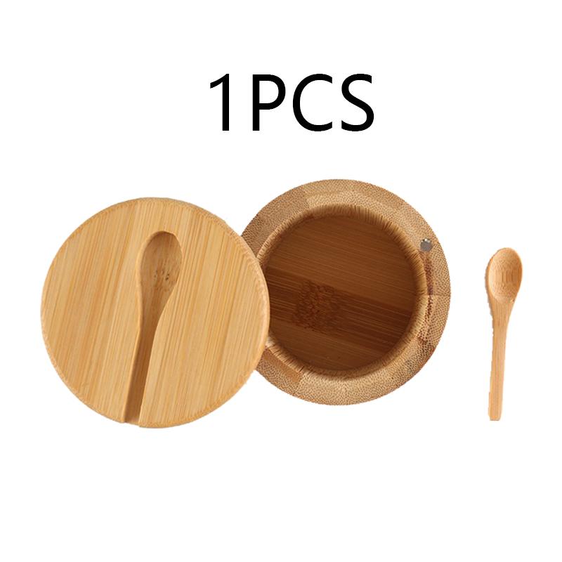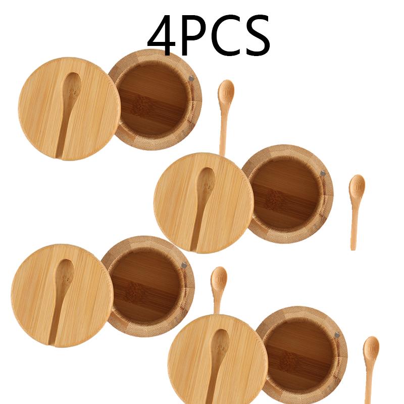 Банки для соли, приправы, банка для перца, бамбуковая коробка для приправ, чаша для хранения, набор горшков, деревянный контейнер для сахара, держатель с функцией крышки, несколько чаш