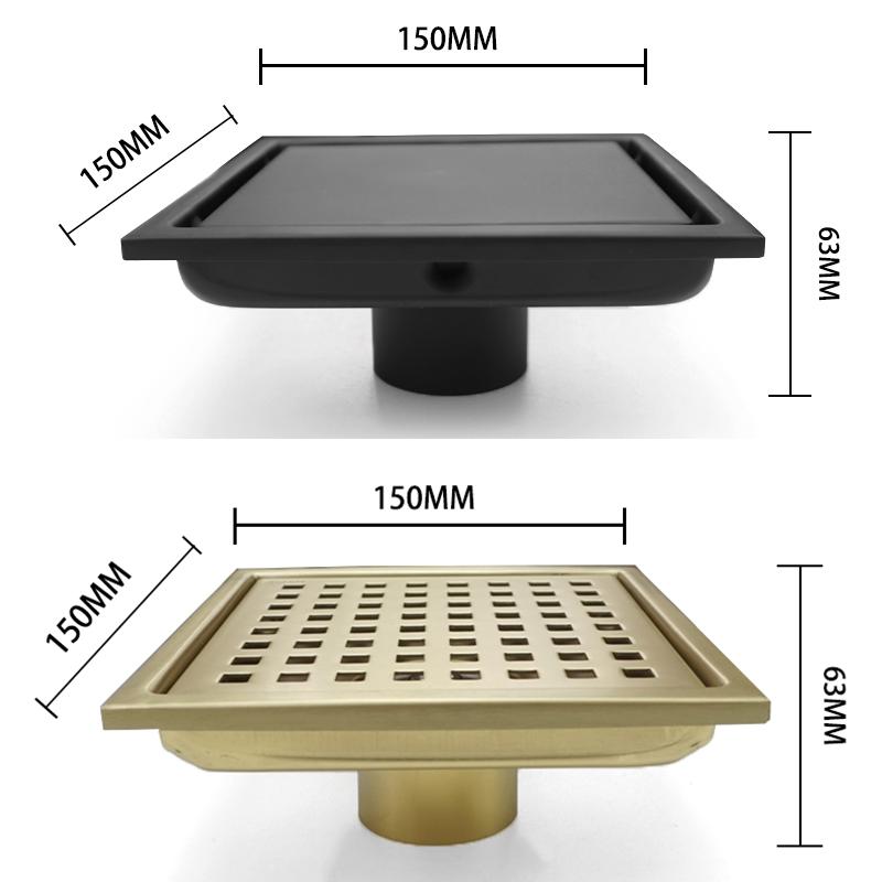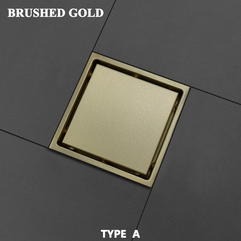 Высококачественная матовая золотая плитка, невидимая встроенная решетка для душа, защита от насекомых и запахов, квадратный слив для пола 15 см*15 см
