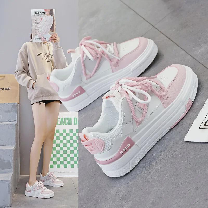 Женские белые кроссовки на толстой подошве — весна 2025 г., мягкие и удобные, универсальная повседневная обувь (К1316)