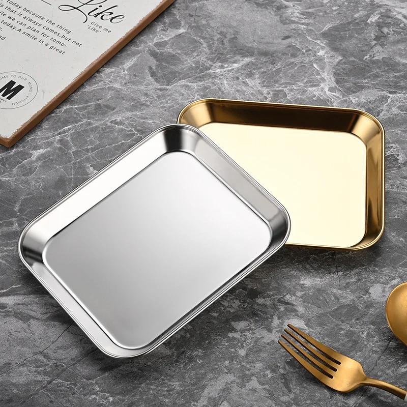 Квадратная тарелка из нержавеющей стали 304, золотистые толстые шампуры, тарелка для ресторана, коммерческого использования, с плоским дном, корейская посуда для барбекю