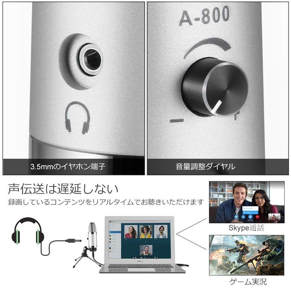 Микрофон для ПК USB-микрофон Конденсаторный микрофон Alvoxcon Live Comment Микрофон Однонаправленный с разъемом для наушников Регулировка громкости Skype