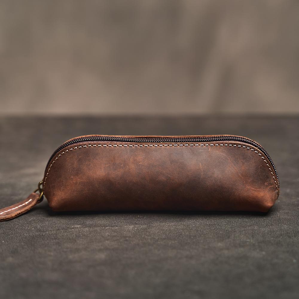 Винтажная кожаная сумка-карандаш, простой канцелярский чехол для ручки, сумка для хранения, пенал на молнии, коробка для очков, школьные принадлежности