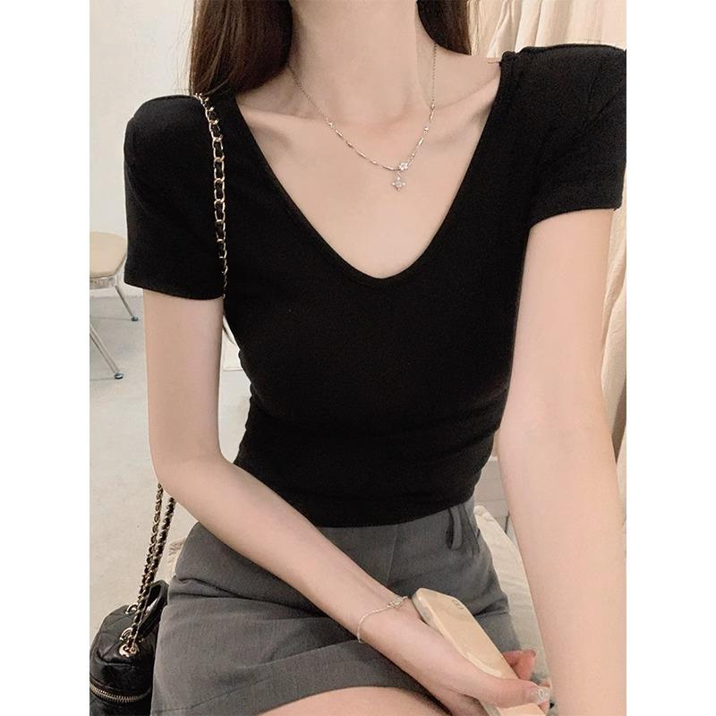 Однотонная футболка с большим вырезом и короткими рукавами для женщин, летняя, новая, милая, горячая, для девушек, стройнящая, сексуальная, универсальная, темпераментная, короткая футболка