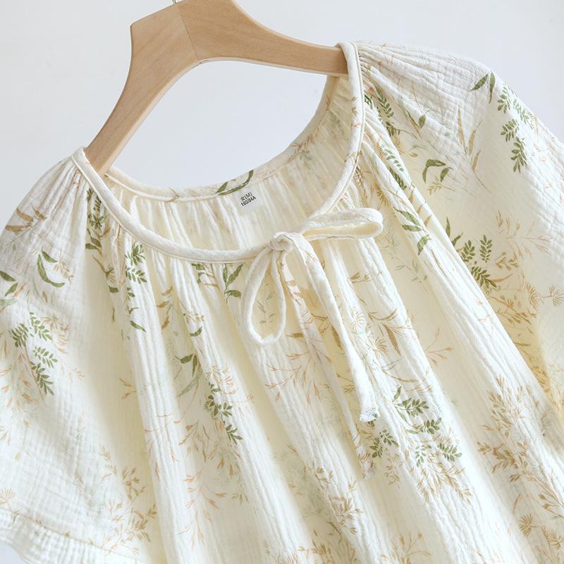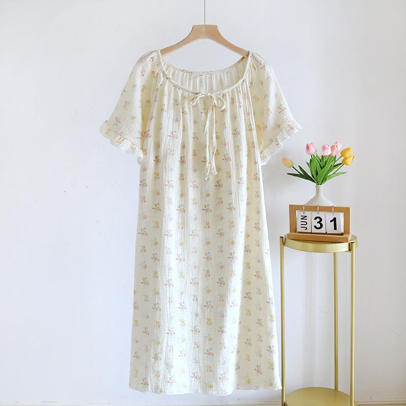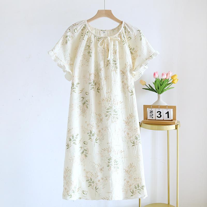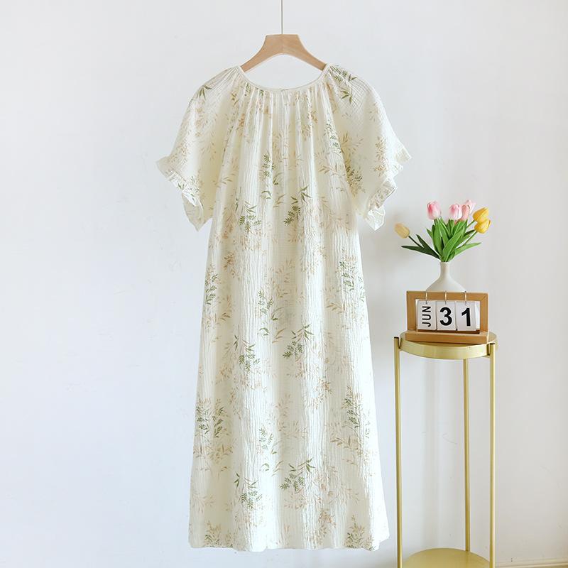 Новая женская пижамная юбка 100% чистый хлопок креп средней длины с коротким рукавом пижамная юбка фрагментированное цветочное милое домашнее платье