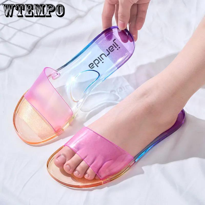 WTEMPO Модные мягкие тапочки Jelly Outdoor Indoor Home, женские весенне-летние прозрачные пляжные сандалии с открытым носком и плоским каблуком
