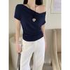 Горячая девушка, черная футболка pure desire с короткими рукавами для женщин, лето 2024 года, двусторонний топ с открытыми плечами и талией