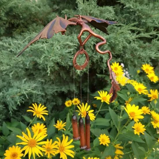 Металлический колокольчик с изображением летящего дракона с 3 трубками, натуральная успокаивающая мелодия для сада, патио, уличного винтажного подвесного колокольчика с драконом, украшение
