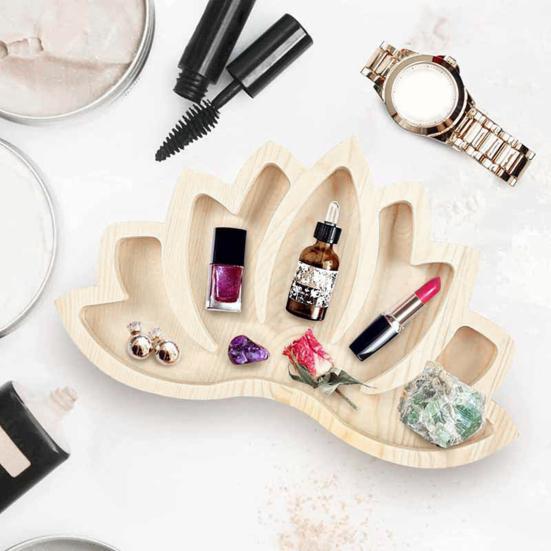 Деревянная тарелка, поднос для украшений, гладкий край, без заусенцев, дизайн в виде цветка лотоса, сервировочный поднос для десертов, украшение на Рамадан