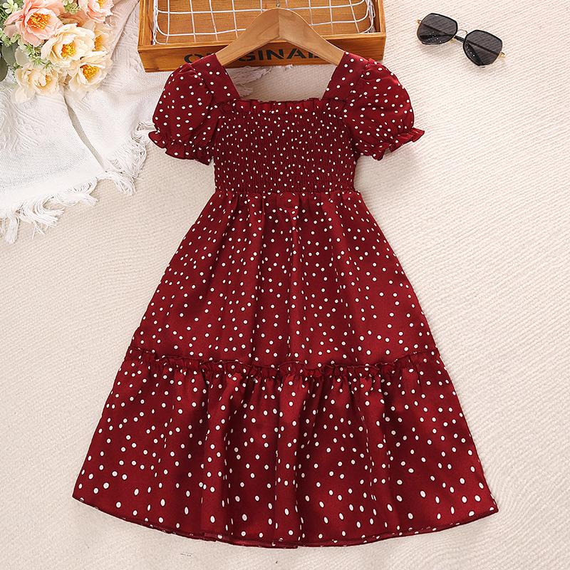 Одежда для девочек 7-12 лет Летние платья Винтажные платья принцессы в горошек с коротким рукавом Платья принцессы для больших детей Платья для вечеринок