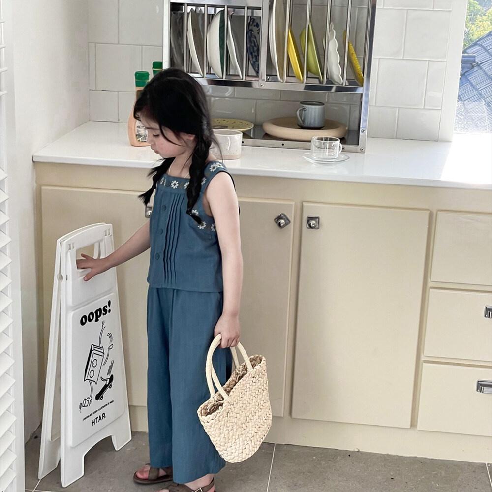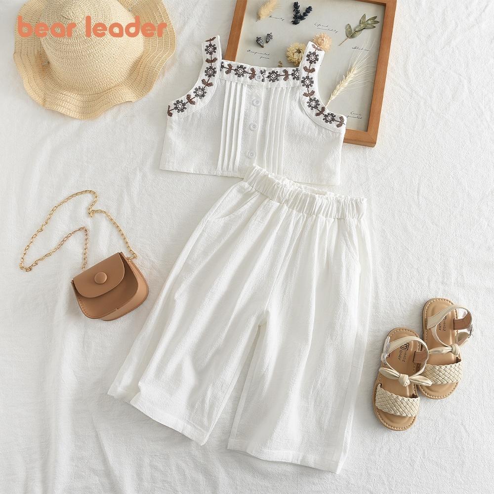 Костюм для девочки Bear Leader 3-7 лет, хлопковый жилет с цветочной вышивкой + штаны, комплект из двух предметов AM1237