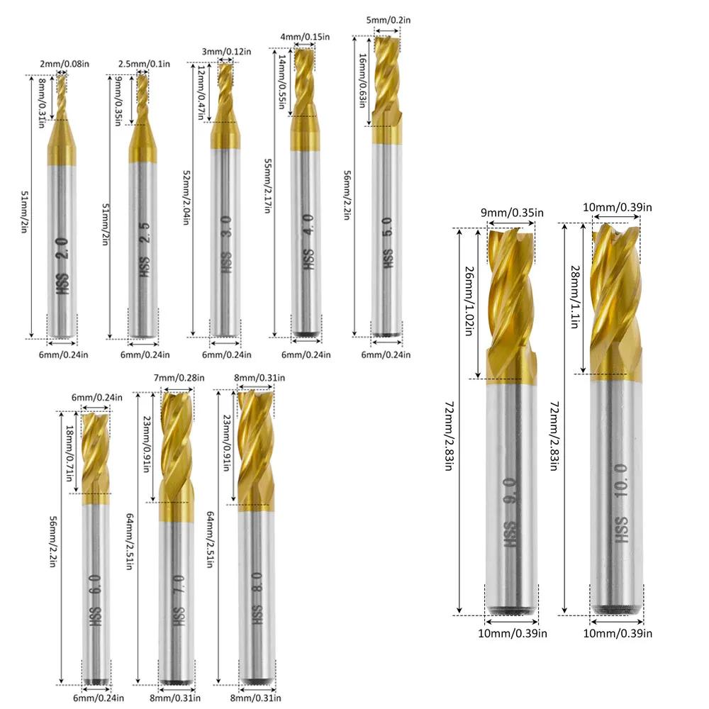 Концевые фрезы с 4 канавками и титановым покрытием, набор сверл с прямым хвостовиком HSS CNC 5/64" - 3/8", инструменты для обработки металла и дерева — купить товар онлайн с бесплатной доставкой до всему миру!
