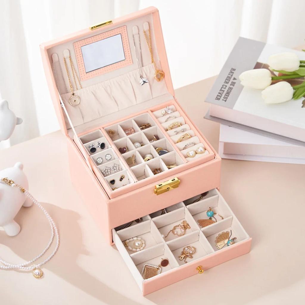 Органайзер для ювелирных изделий из искусственной кожи, витрина для ювелирных изделий с зеркалом, двухслойный держатель для хранения ювелирных изделий, ящик большой емкости — купить товар онлайн с бесплатной доставкой по всему миру!