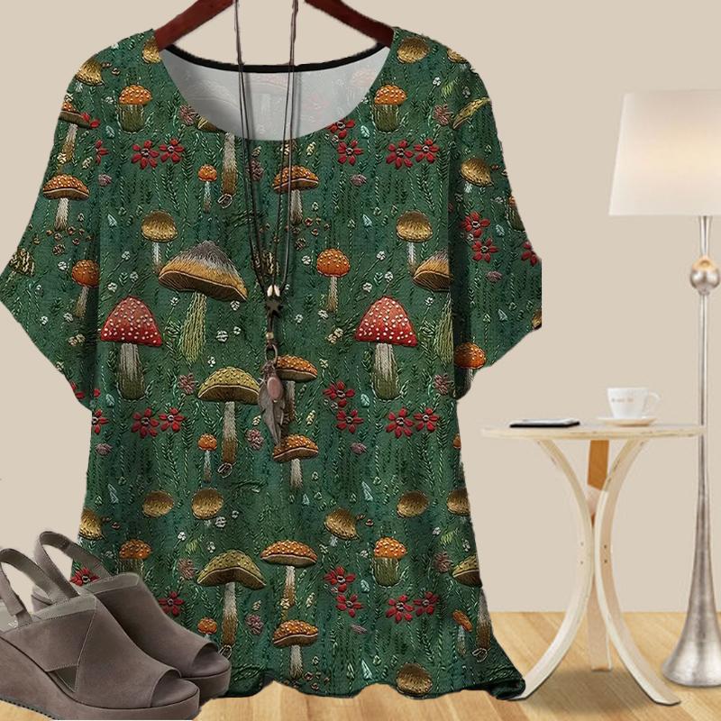 Женская повседневная свободная весенняя рубашка, женские топы с коротким рукавом и принтом «трава, грибы, любовь» — купить товар онлайн с бесплатной доставкой по всему миру!