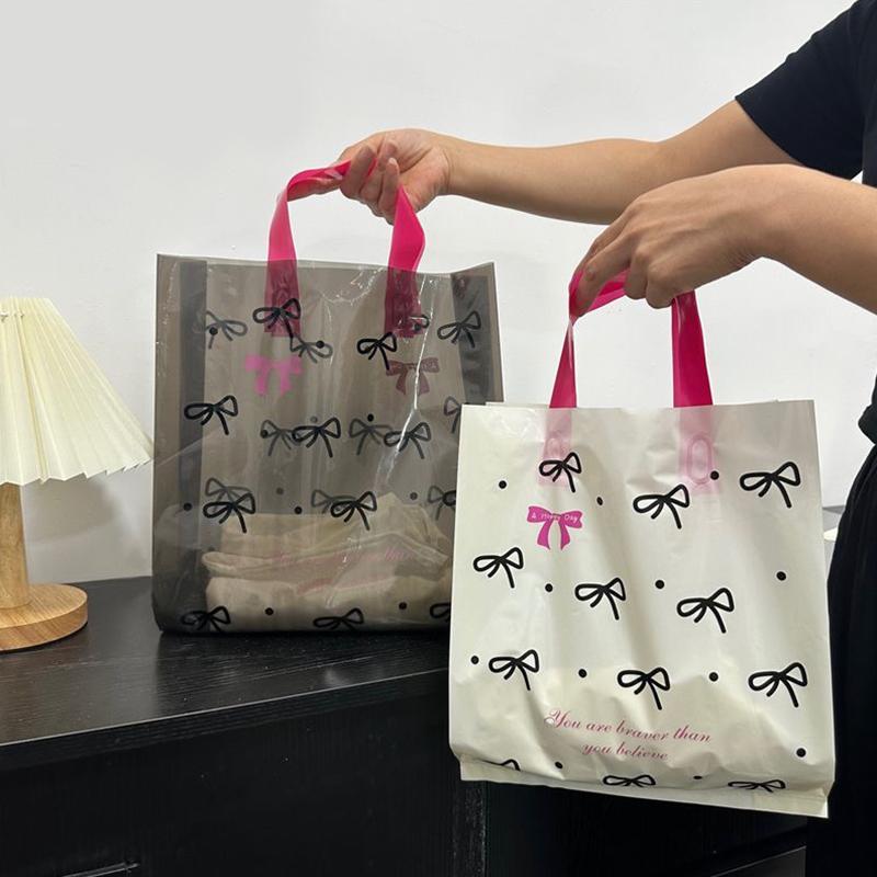 5/10 шт. Сумка-бабочка с узлом, мультяшная сумочка, утолщенная прозрачная сумка, прочный пластиковый пакет, многоразовый подарочный пакет, сумка для хранения 25x30x9 см