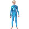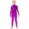 Блестящий металлический комбинезон с воротником-стойкой на молнии сзади, цельный комбинезон с длинными рукавами, детский костюм Wetlook