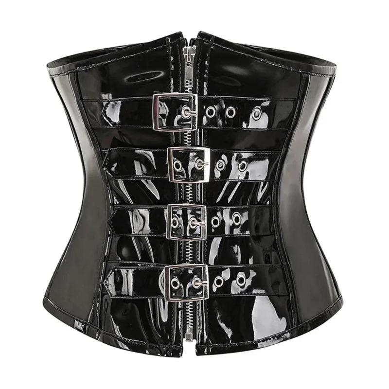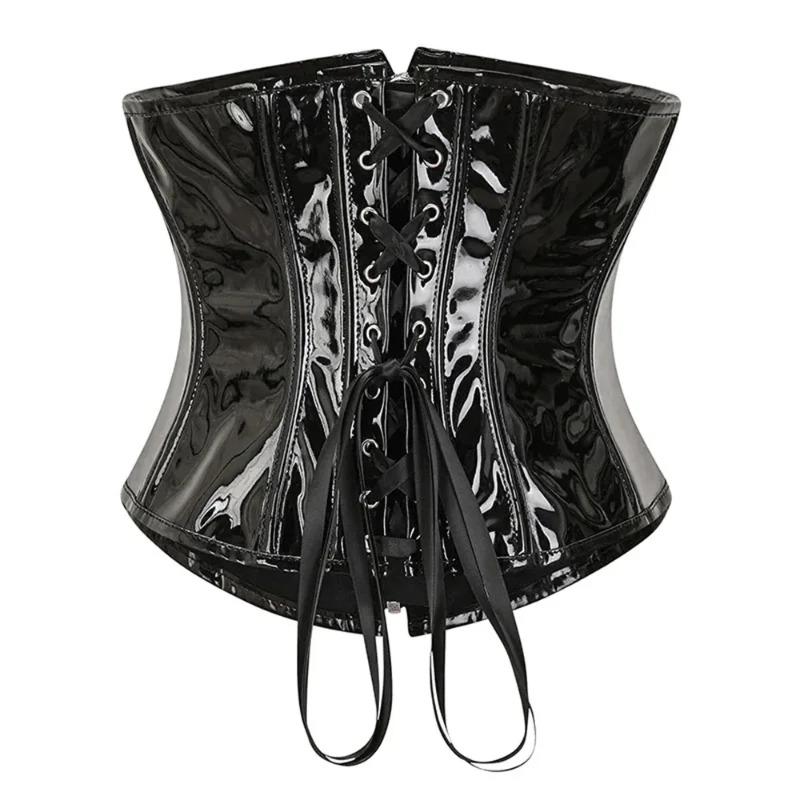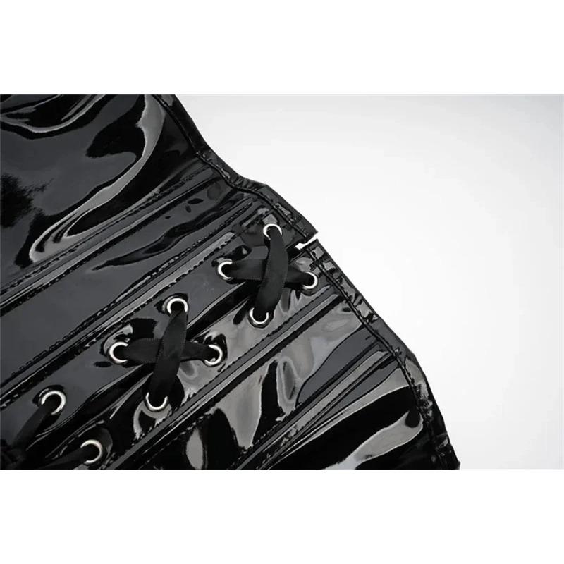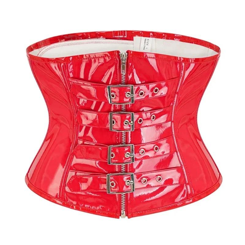 Корсет из искусственной кожи, женский, блестящий, ПВХ, стимпанк, корсеты и бюстье, готический, черный, красный, под грудью, корсет-утягиватель для талии