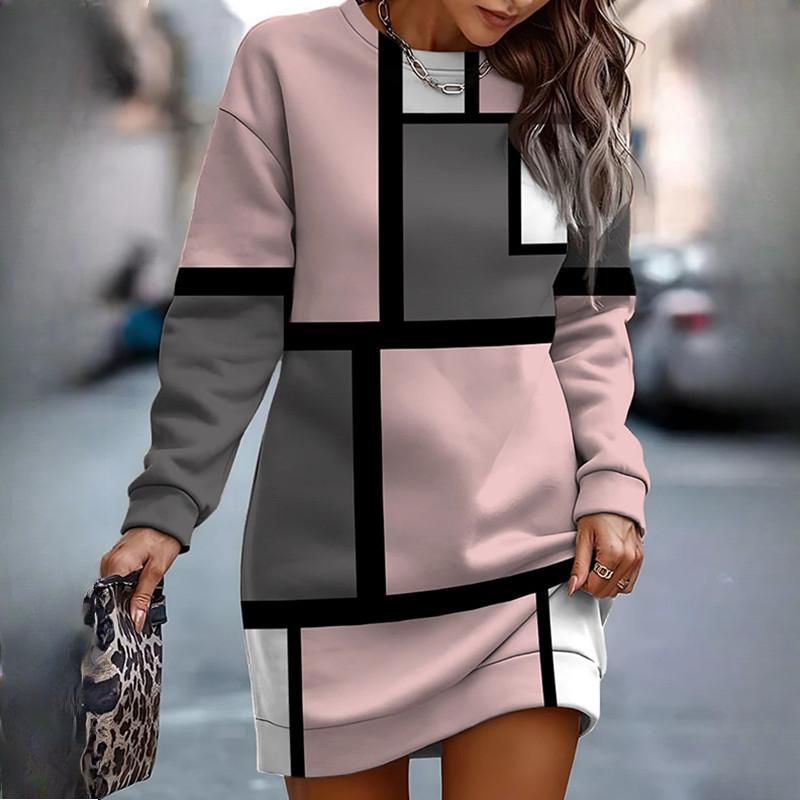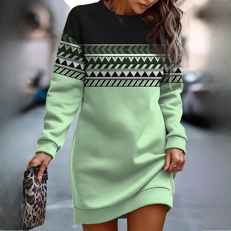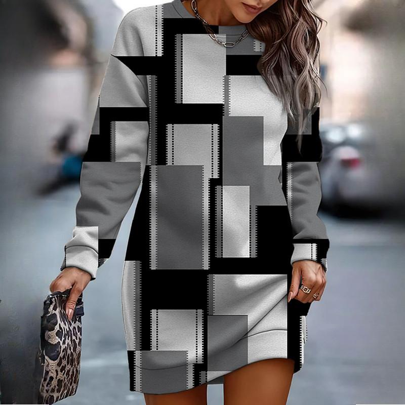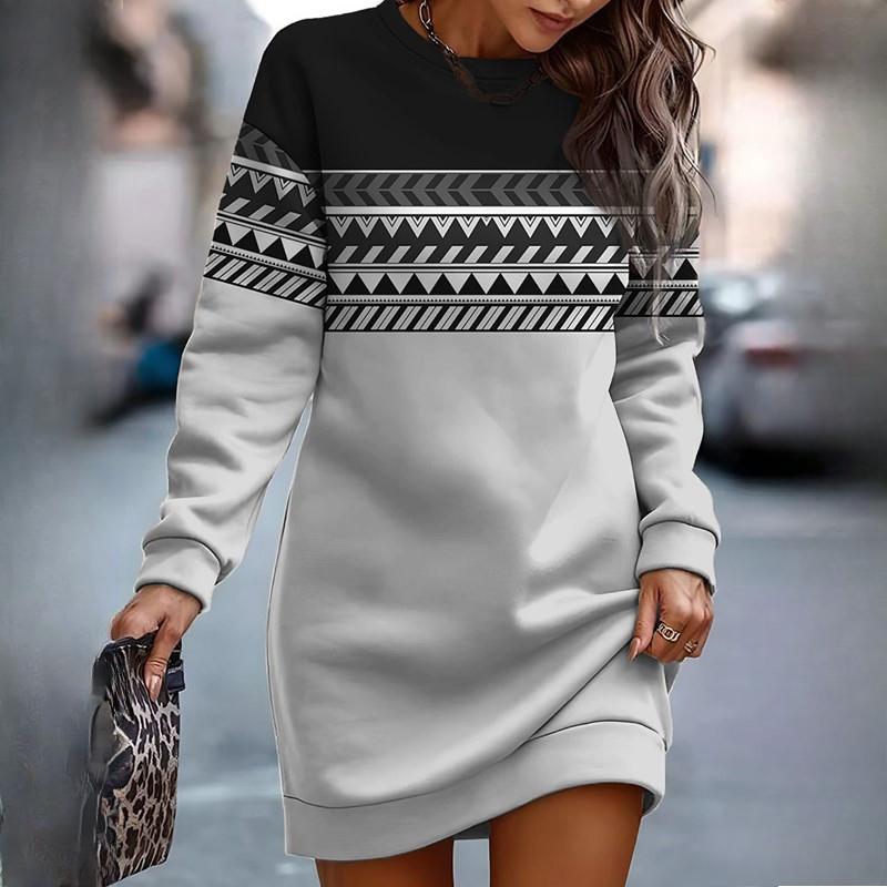 Осенне-весенние платья-толстовки для женщин с принтом и круглым вырезом, с длинным рукавом, повседневные свободные платья для женщин, толстовки, халаты