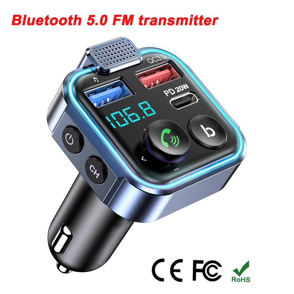Bluetooth 5.0 FM-передатчик беспроводной радиоадаптер автомобильный комплект с Type-C PD 20 Вт QC3.0 быстрое зарядное устройство поддерживает U Disk Color Light