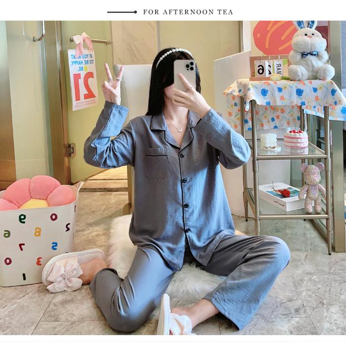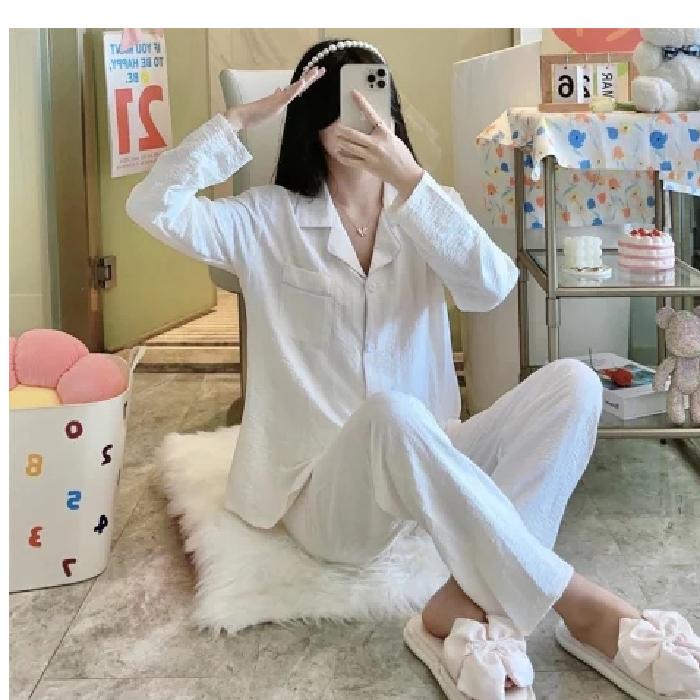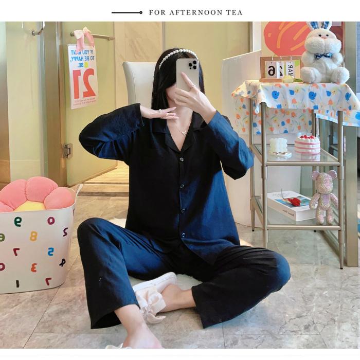 Большие размеры женские брюки с длинным рукавом пижамы пижамы однотонные белые пижамы Mujer спальня домашняя одежда женская пижама