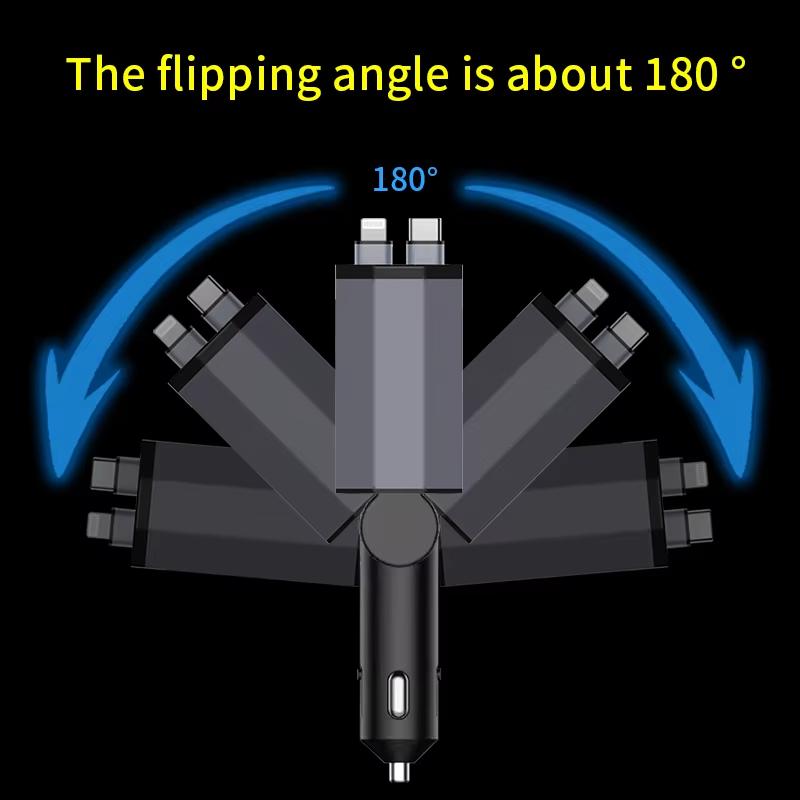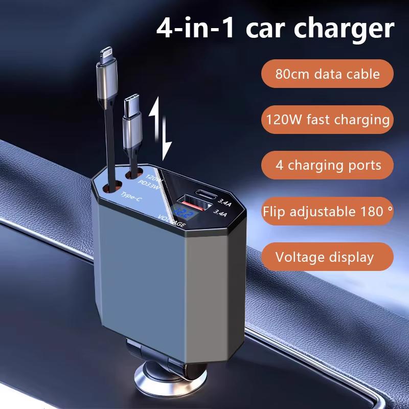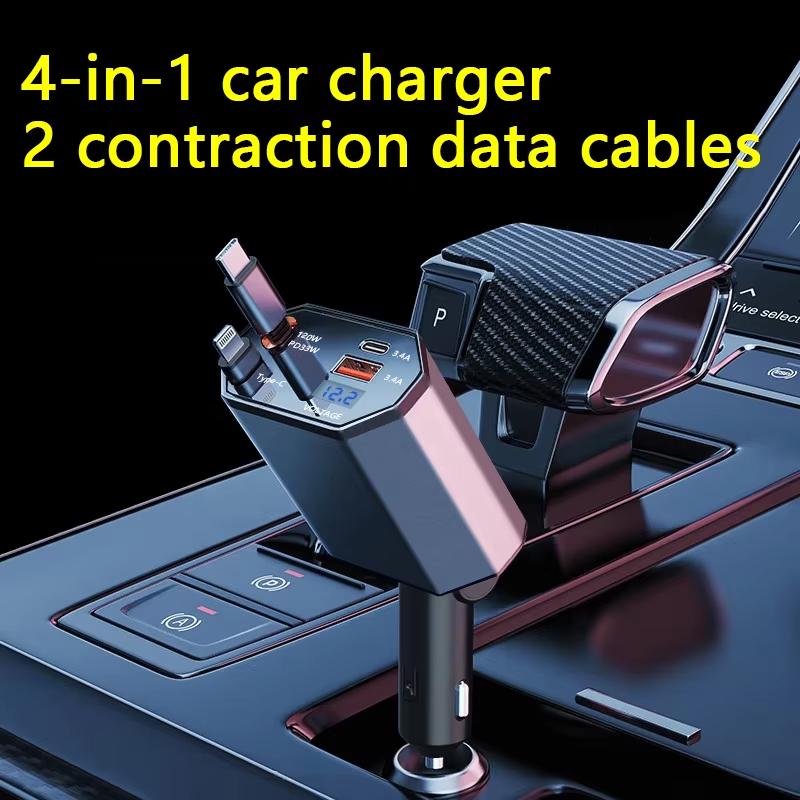120 Вт 4 в 1 выдвижное сверхбыстрое автомобильное зарядное устройство PD Qc3.0 USB C кабель для iPhone Huawei Samsung адаптер для быстрой зарядки