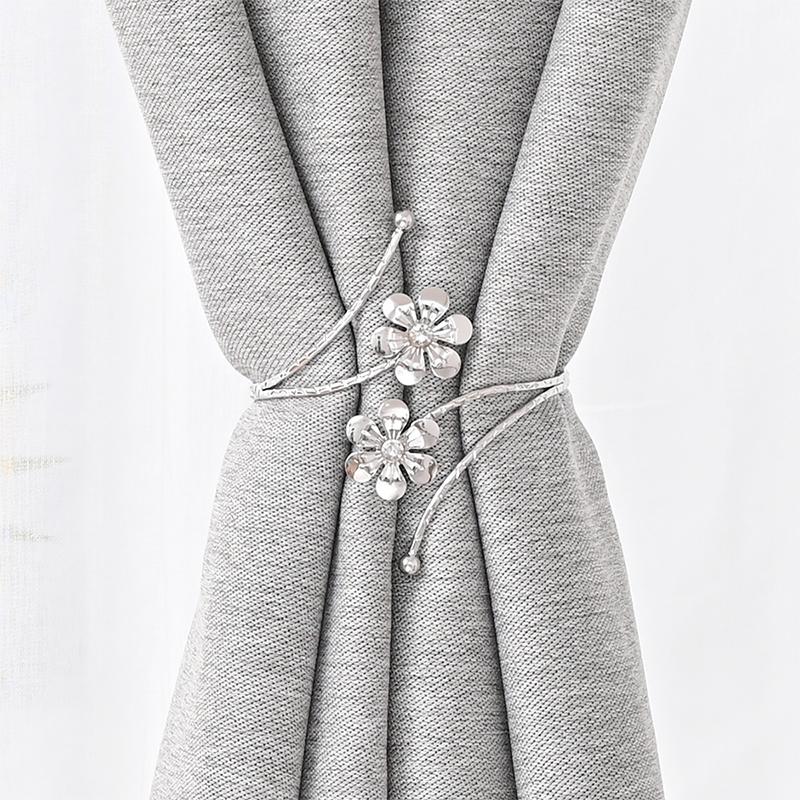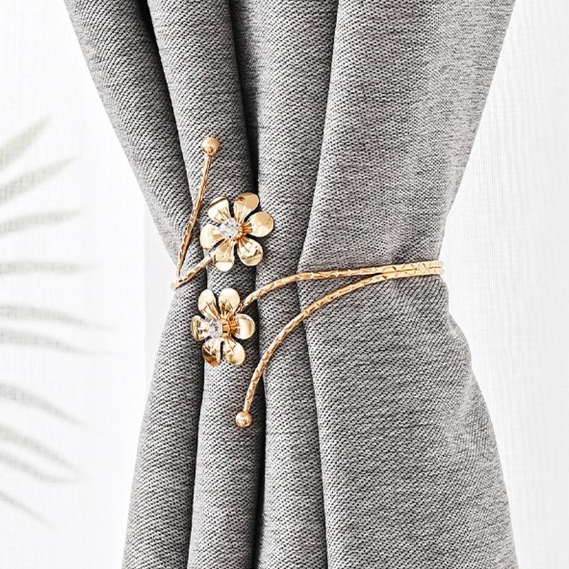 1 шт., легкая роскошная двойная пряжка для штор с цветком, золотисто-серебряный держатель для штор, металлический ремень для штор, современный минималистский зажим для штор