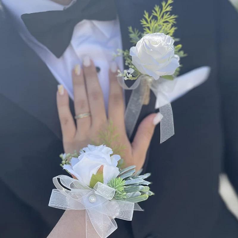Размер:(Прибл.) Корсаж 9*10 см / 3,54*3,94 дюйма, Цветок на запястье 8*9 см / 3,15*3,54 дюйма