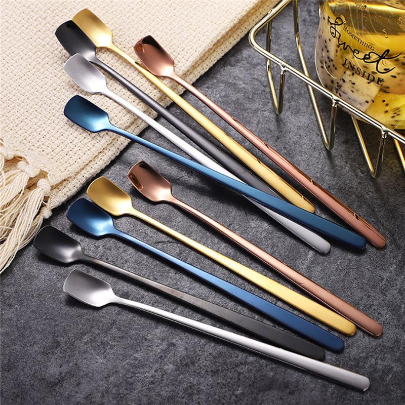 1 шт. квадратная головка для размешивания кофе из нержавеющей стали с длинной ручкой, цветная чайная ложка, десертные ложки, столовые приборы, кухонные принадлежности — купить товар онлайн с бесплатной доставкой по всему миру!
